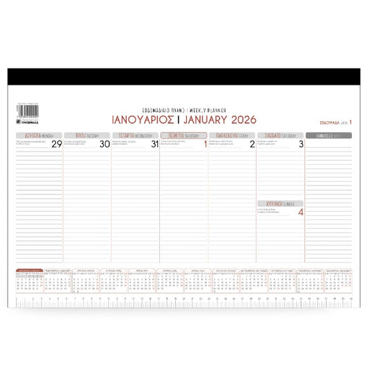 Εβδομαδιαίο Πλάνο 2026 Γραφείου 29x43 cm