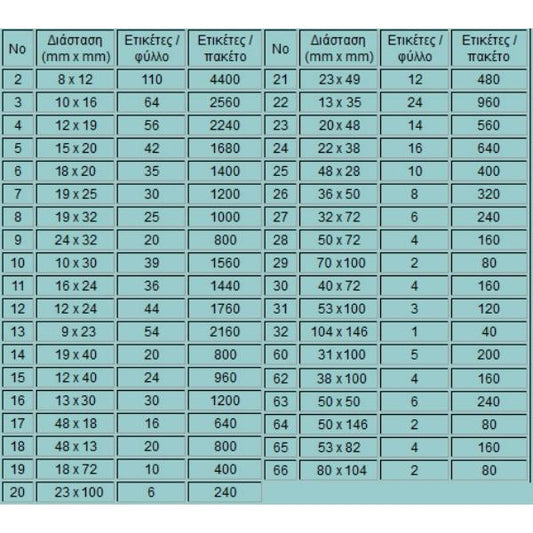 Ετικέτες Αυτοκόλλητες Λευκές 40Φυλ. Διάφορα Μεγέθη
