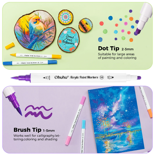 Μαρκαδόροι Ohuhu Cotton-core 36 Χρώματα Brush & Dot Tip