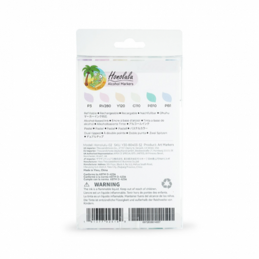 Μαρκαδόροι Ohuhu Honolulu Διπλής Μύτης Σετ 6 Pastel Χρώματα, Brush & Chisel