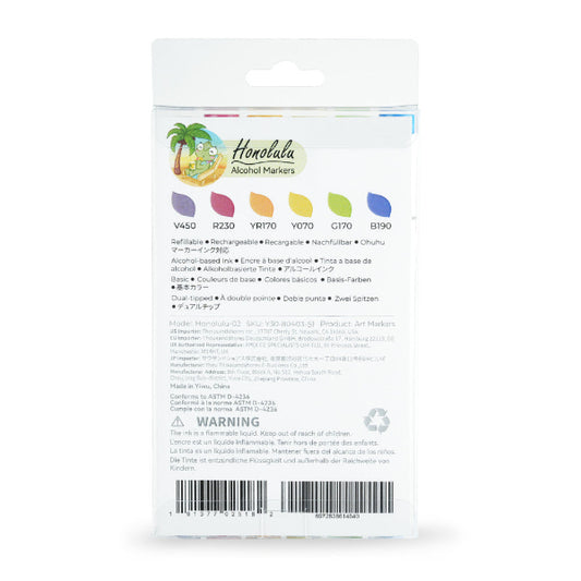 Μαρκαδόροι Ohuhu Honolulu Διπλής Μύτης Σετ 6 Χρώματα, Brush & Chisel