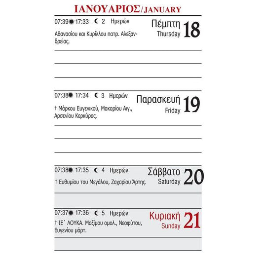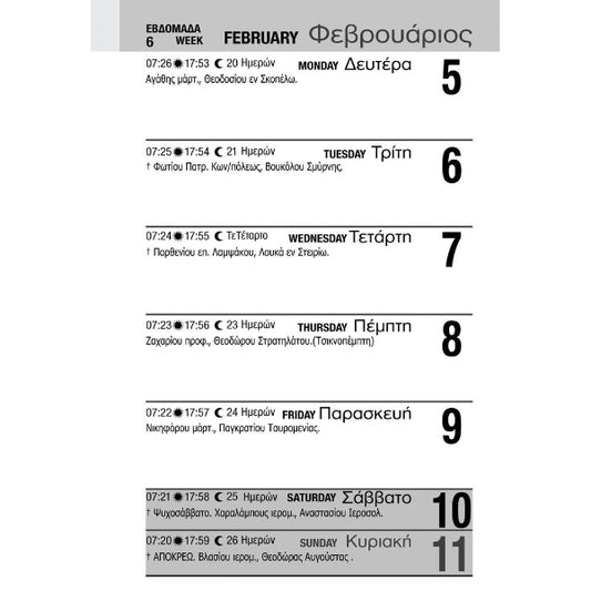 Ανταλλακτικό Φύλλα Organizer 2026 Εβδομάδα ανα Σελίδα 9.5x17