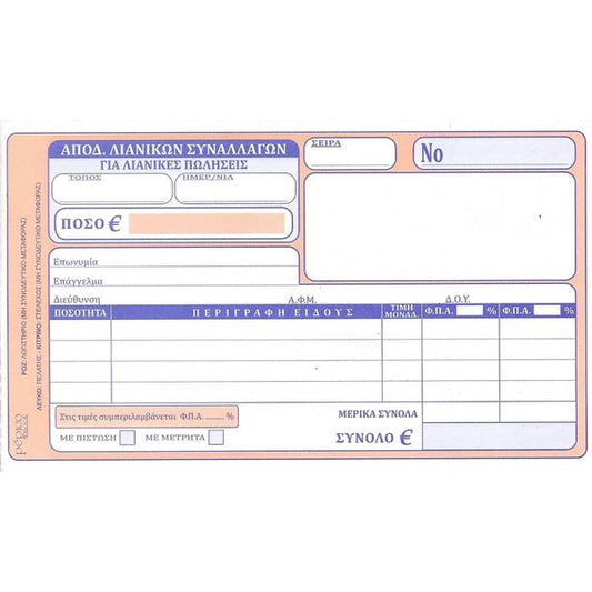 Απόδειξη Λιανικών Συναλλαγών για λιανικές πωλήσεις (455-205) 50×3φ