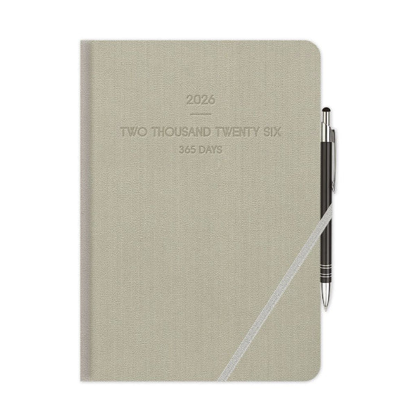 Ημερολόγιο εβδομαδιαίο με κλασσική βιβλιοδεσία, στρογγυλεμένες γωνίες και πλάγιο λαστιχάκι με δυνατότητα συγκράτησης στυλό. Περιλαμβάνεται φάκελος εγγράφων στο πίσω μέρος του βιβλίου.