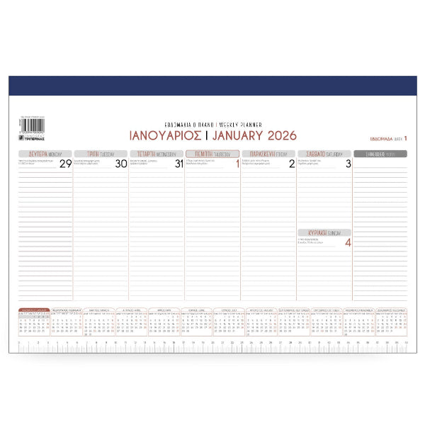 Εβδομαδιαίο Πλάνο 2026 Γραφείου 29x43 cm