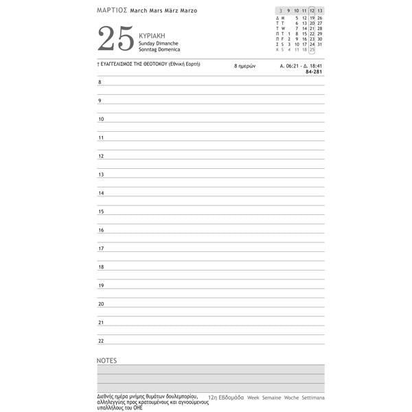 - Συνοπτικό ημερολόγιο πριν από κάθε μήνα