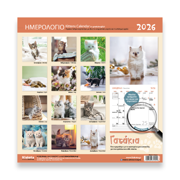 Ημερολόγιο Τοίχου 2026 Γατάκια 30x30cm