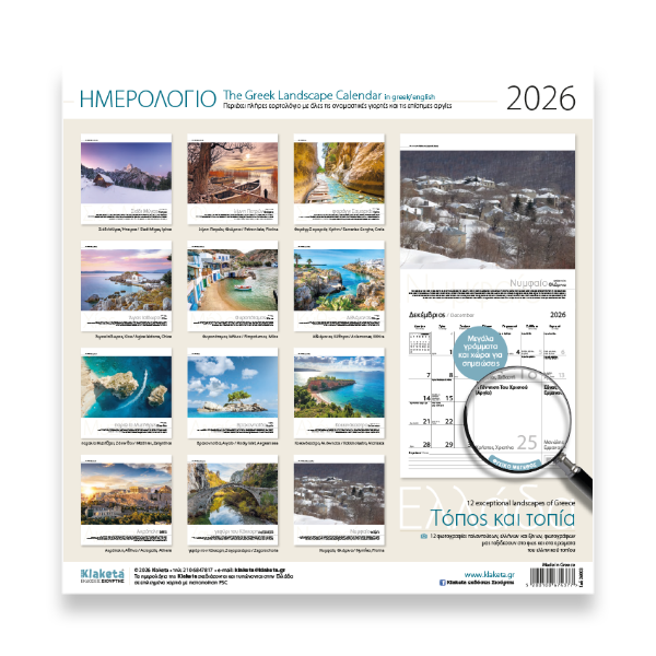 Ημερολόγιο Τοίχου 2026 Ελλάδα «Τόπος και Τοπία» 30x30cm
