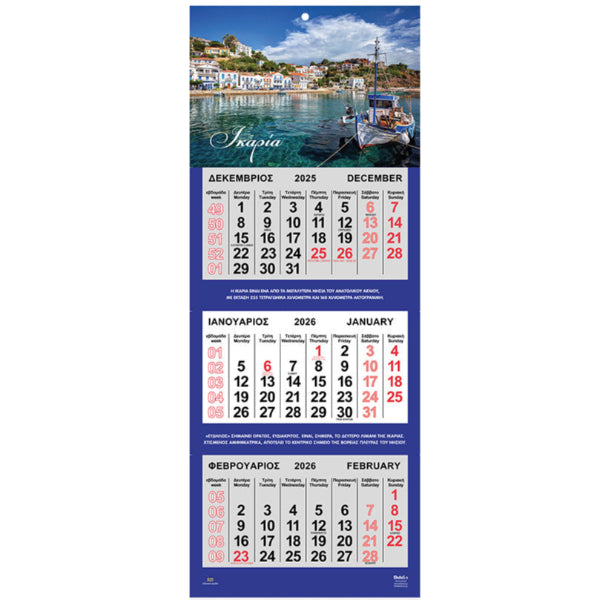 Κρεμαστό ημερολόγιο τοίχου τριμηνιαίο "Ικαρία"