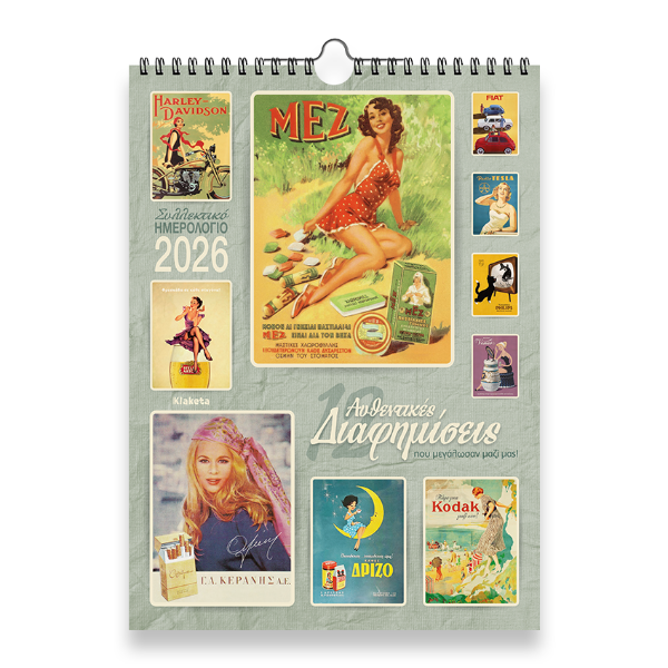 Μόλις κυκλοφόρησε το ολοκαίνουργο ημερολόγιο τοίχου, με 12 διαφημίσεις που άντεξαν στο χρόνο και επιστρέφουν νοσταλγικά, για να μας θυμίσουν τα πρώτα χρόνια της καταναλωτικής μας αθωότητας. 12 αυθεντικές διαφημίσεις, μια για κάθε μήνα.