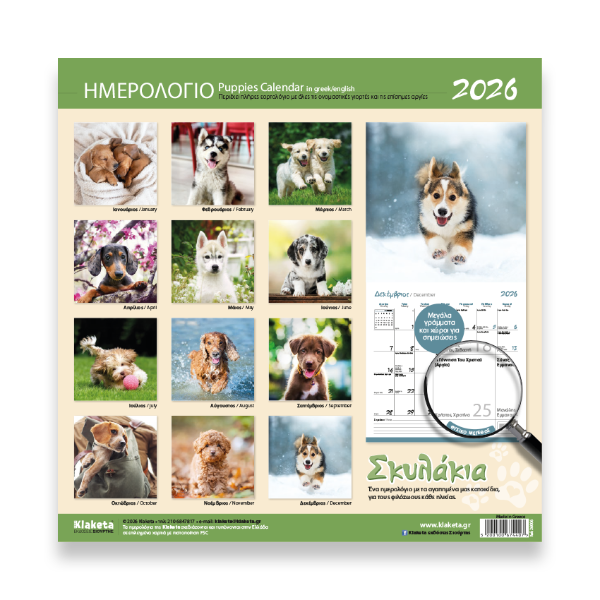Ημερολόγιο Τοίχου 2026 Σκυλάκια 30x30cm
