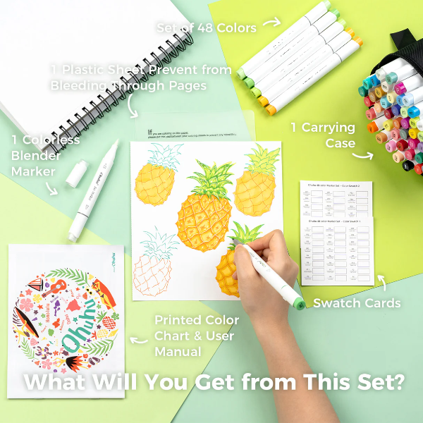 Το σετ διατίθεται σε υπέροχη θήκη και περιλαμβάνει 49 μαρκαδόρους (48 χρώματα και 1 άχρωμο Blender) με διπλή μύτη Brush & Fine που έχουν ως βάση την αλκοόλη.
