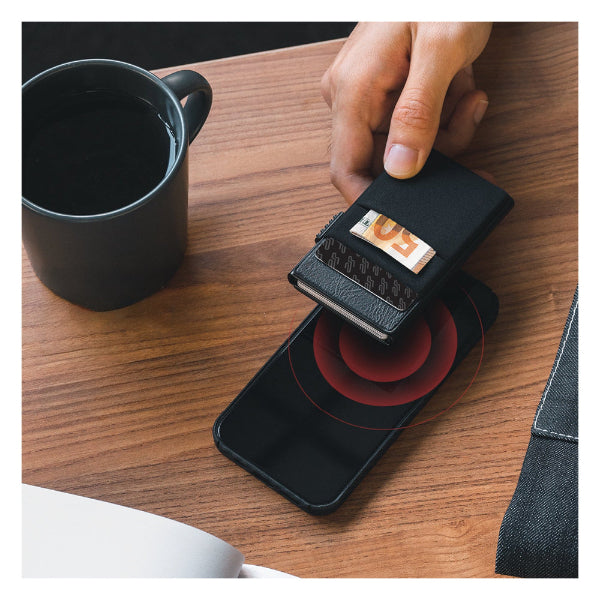 • Η καρτοθήκη έχει προστασία RFID/NFC που προστατεύει από ηλεκτρονική υποκλοπή σε περίπτωση επαφής με το πορτοφόλι σας.