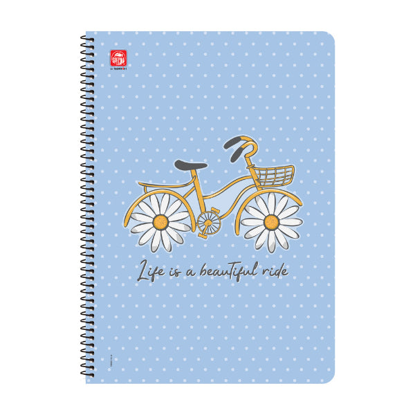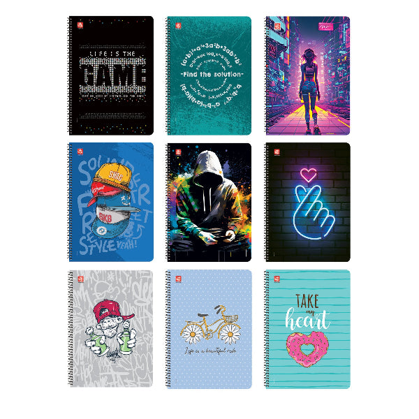 Τετράδιο σπιράλ 2 θεμάτων B5 (17x25). Με εξώφυλλο paperboard 350gr. και με σκληρό οπισθόφυλλο για να μπορείς να γράφεις σταθερά. Τα φύλλα είναι από εξαιρετικής ποιότητας χαρτί 70γρ. και η γραμμογράφηση είναι ριγέ. Είναι 2 θεμάτων, με διαχωριστικό για μεγαλύτερη ευκολία. Διατίθεται σε 9 σχέδια, σύμφωνα με τις απαιτήσεις και τις τάσεις της αγοράς.